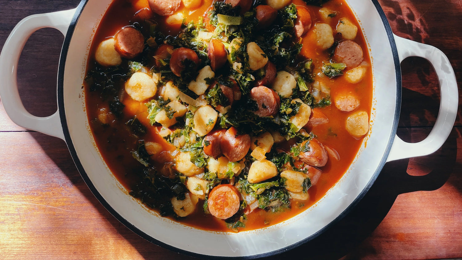 • Boil for 5 minutes before adding the gnocchi and kale, then cook for a further 5 minutes.